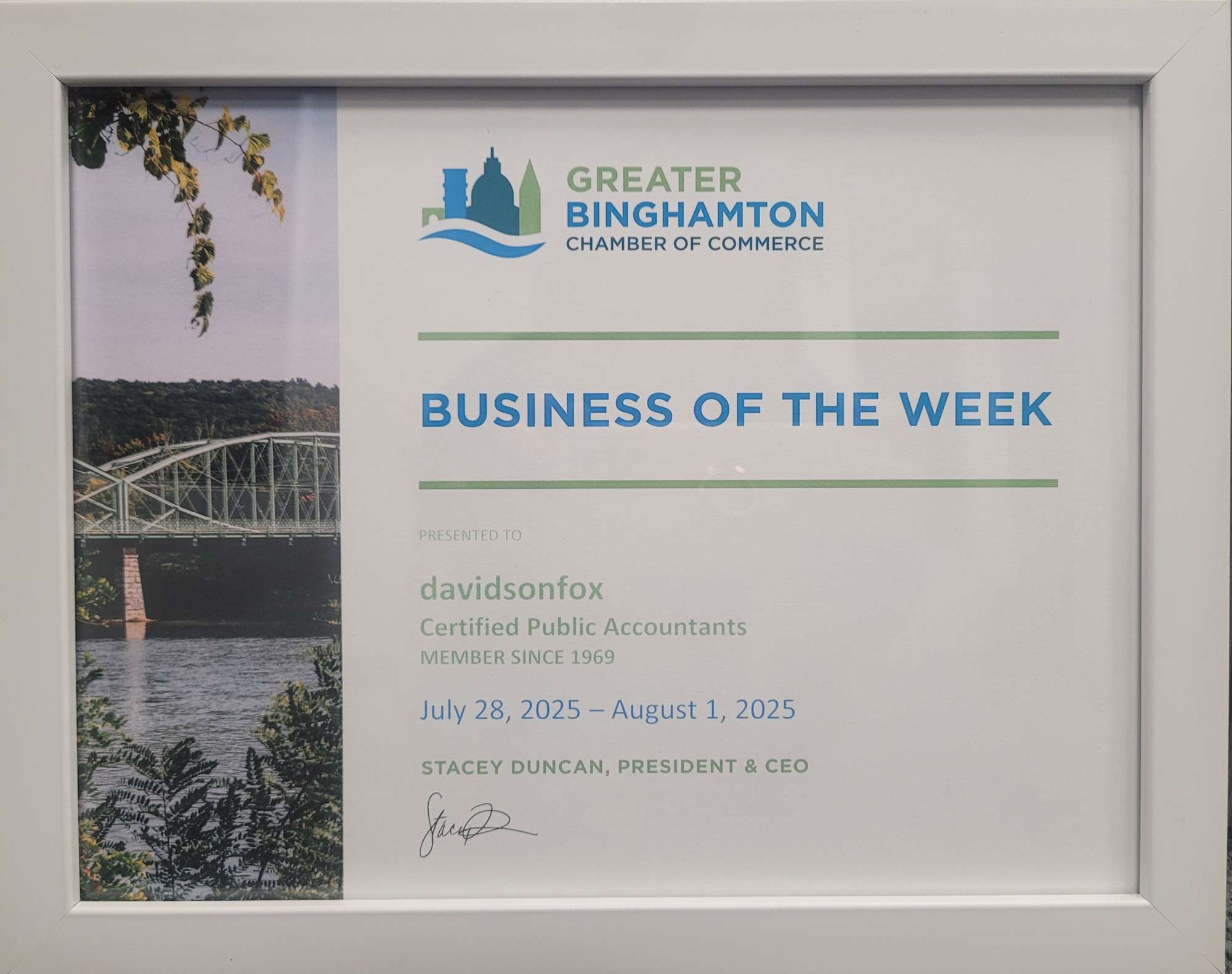 In case you missed it, we were honored to be named Business of the Week by our friends at the Greater Binghamton Chamber of Commerce! You can check out the feature video on our website and Facebook page. A big thank-you to the Chamber for this recognition!